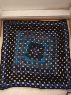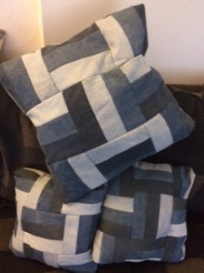 Päällinen tehty vanhoista farkuista ja sivut aikoinaan kirpparilta ostetusta farkuntapaisesta kankaasta (tulipas sekin käyttöön-viimein!). Hienosti sopii mielestäni uuden kodin sisustukseen 🙂