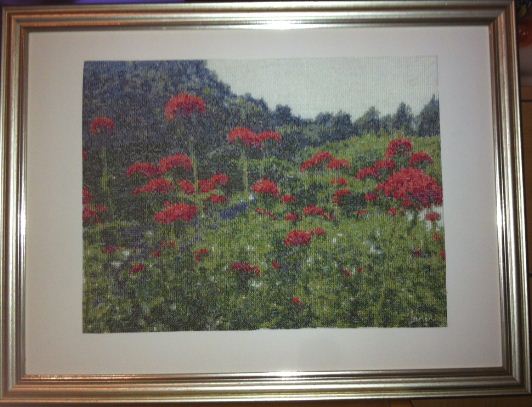 Palava rakkaus ristipistotaulu- itse omasta valokuvasta tehty malli ja toteutus 🙂